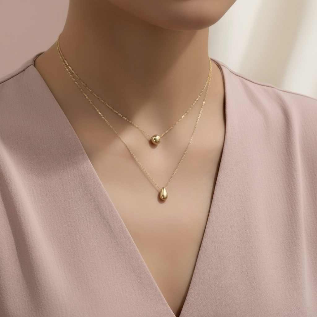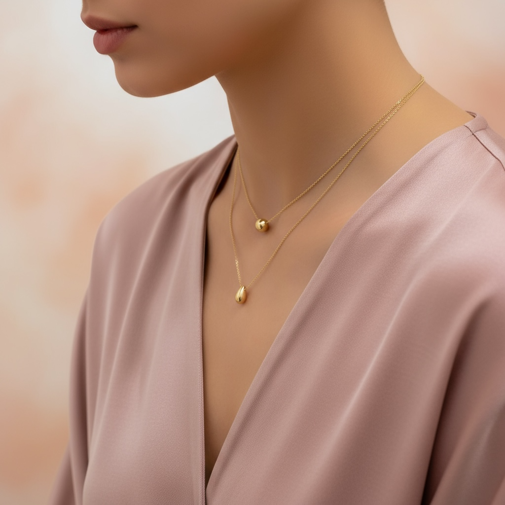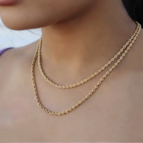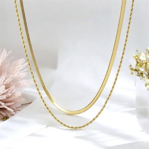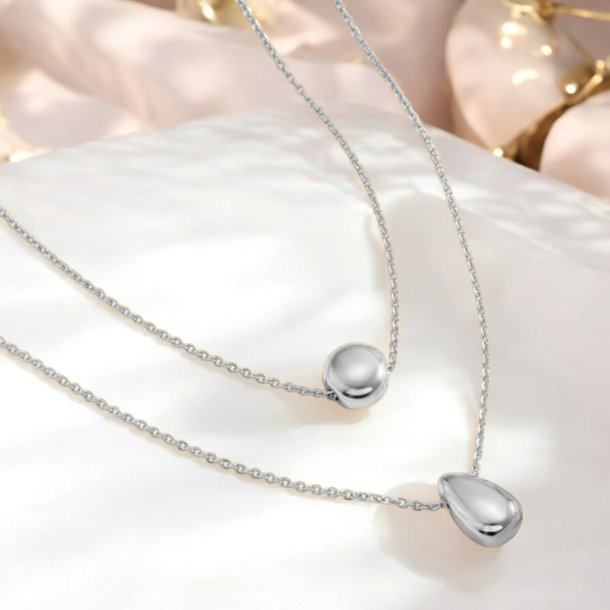 Smuk dobbelt-halskæde i rustfrit ædelstål. Halskæden er udført i et moderne, feminint design og har et eksklusivt udtryk.