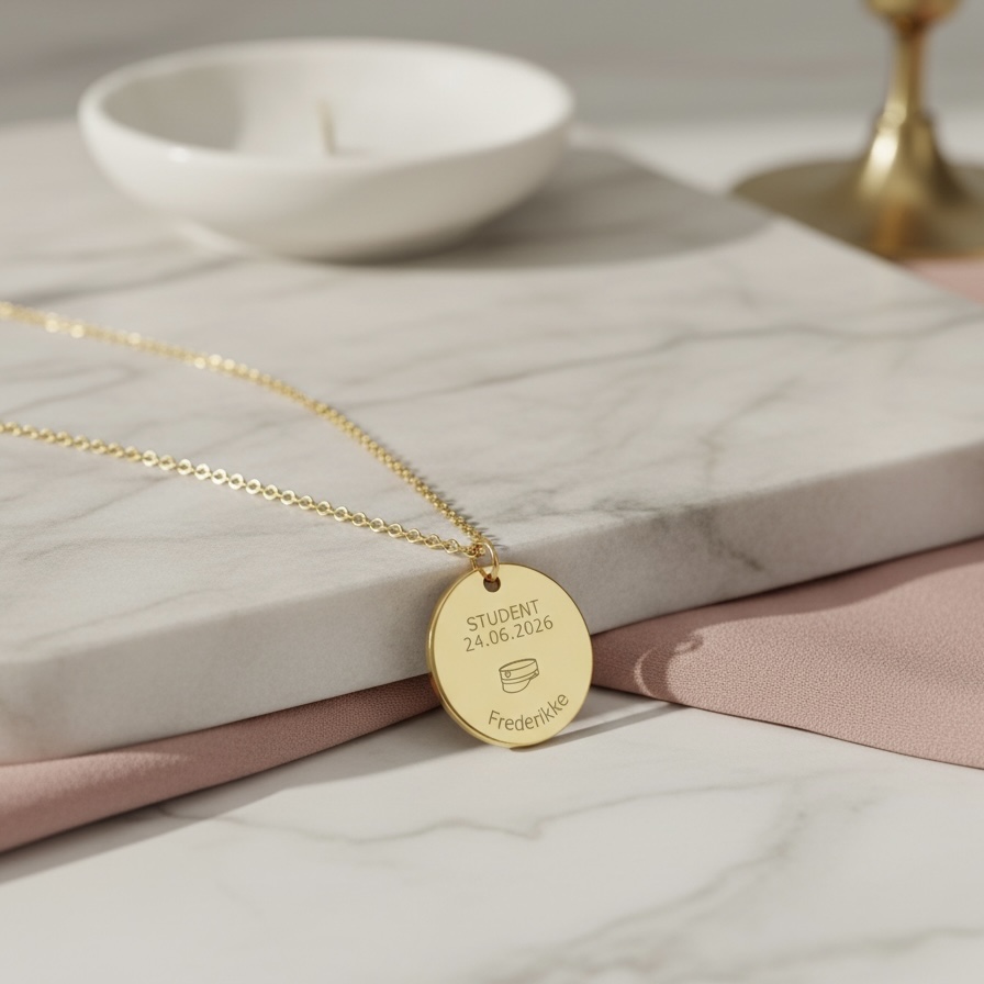 Med navn, årstal og det ikoniske studenterhue-symbol bliver dette smykke et personligt minde om alt det, der er opnået – og alt det, der venter.