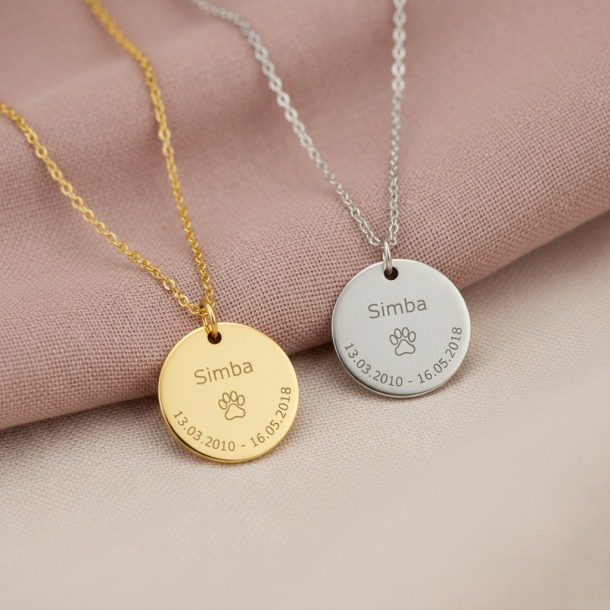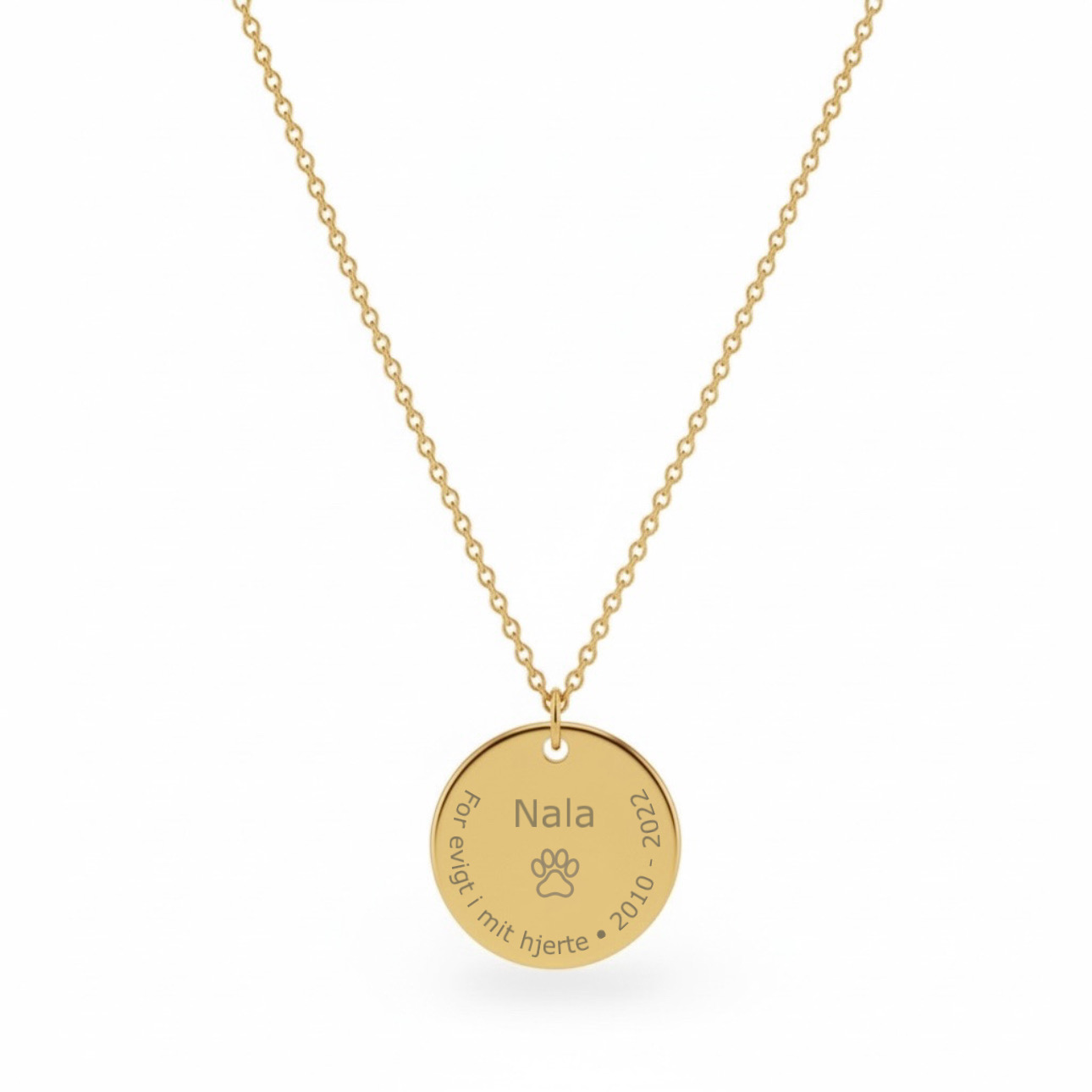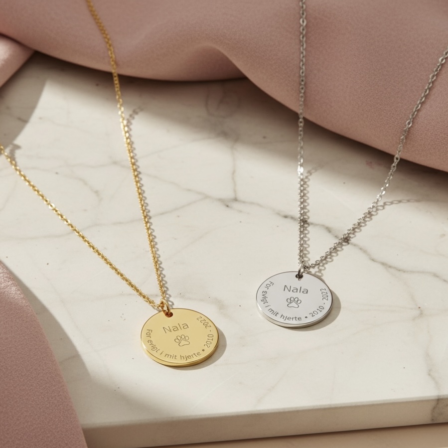 Du kan få indgraveret navn, dato eller en kort tekst – fx dit kæledyrs navn 💛
