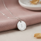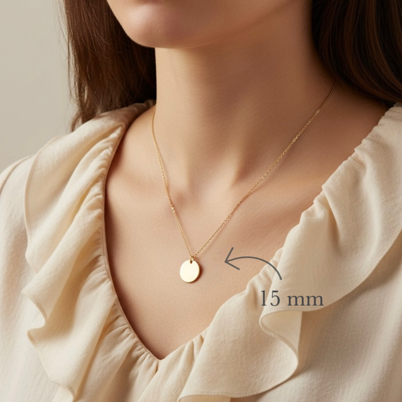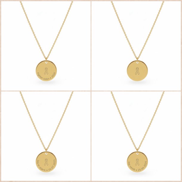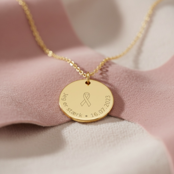 Med den enkle sløjfe indgraveret i centrum og mulighed for at tilføje en personlig tekst eller dato langs kanten, bliver dette smykke et unikt minde, der kan bæres tæt på hjertet.