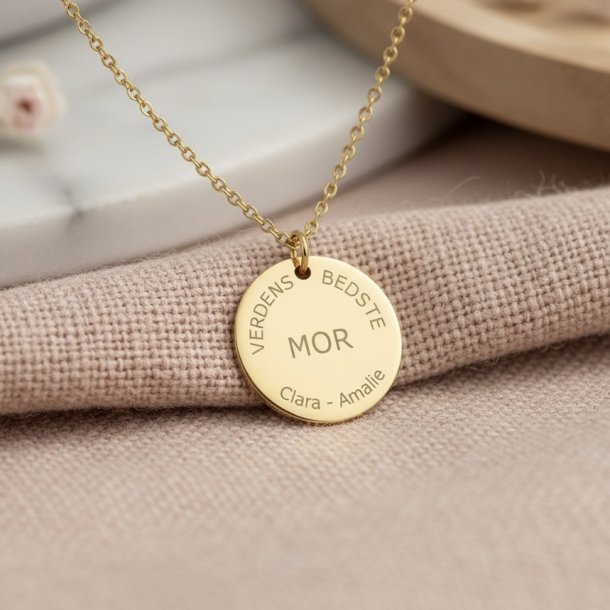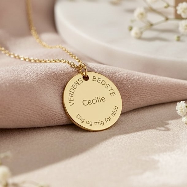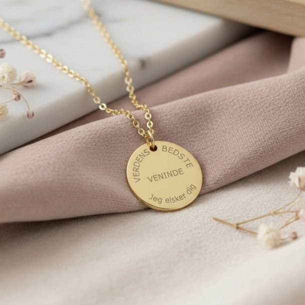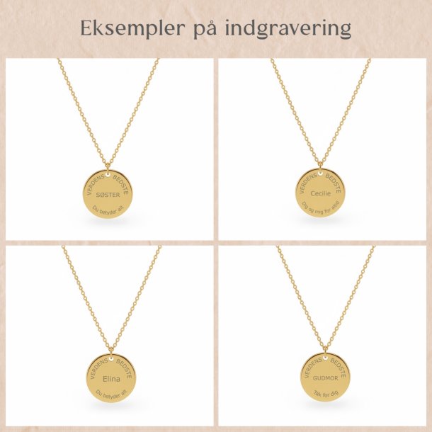 Personlig halskæde med “VERDENS BEDSTE” og din egen tekst 💛
