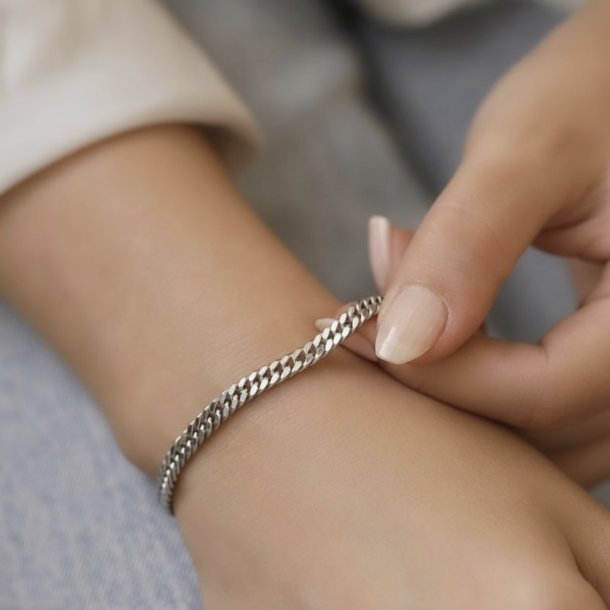 Flot, bredt "Panser" armbånd i rustfrit ædelstål. Brug det alene eller kombinér den med dine andre yndlings-armbånd.