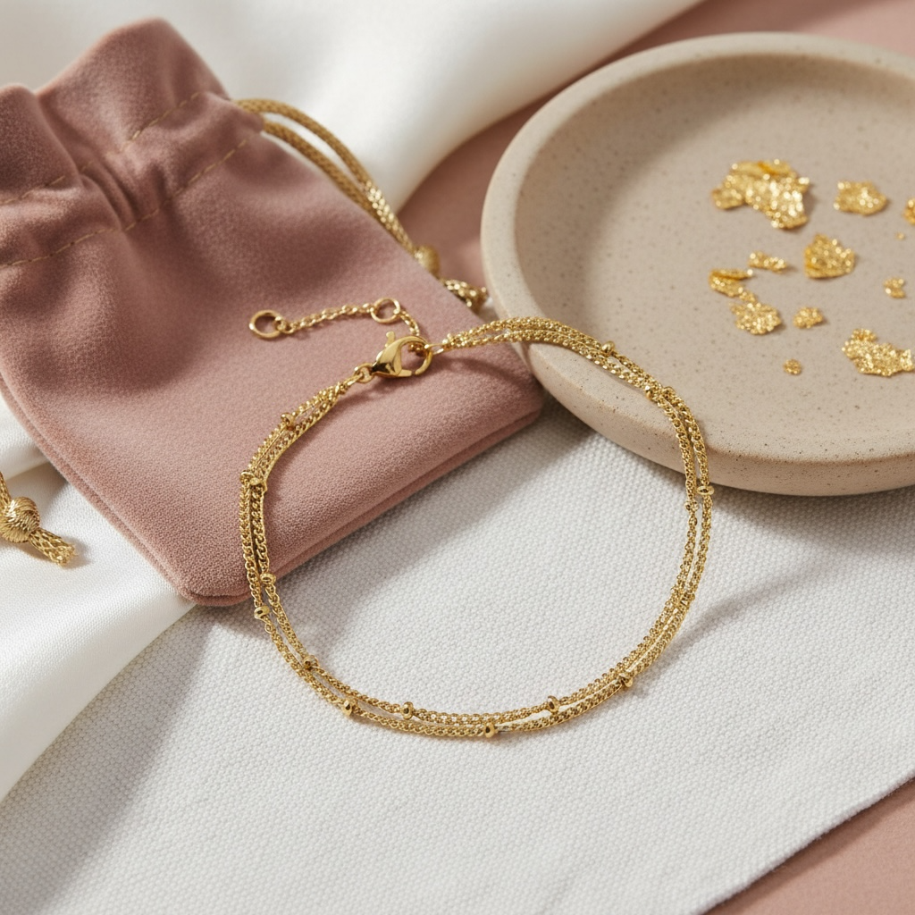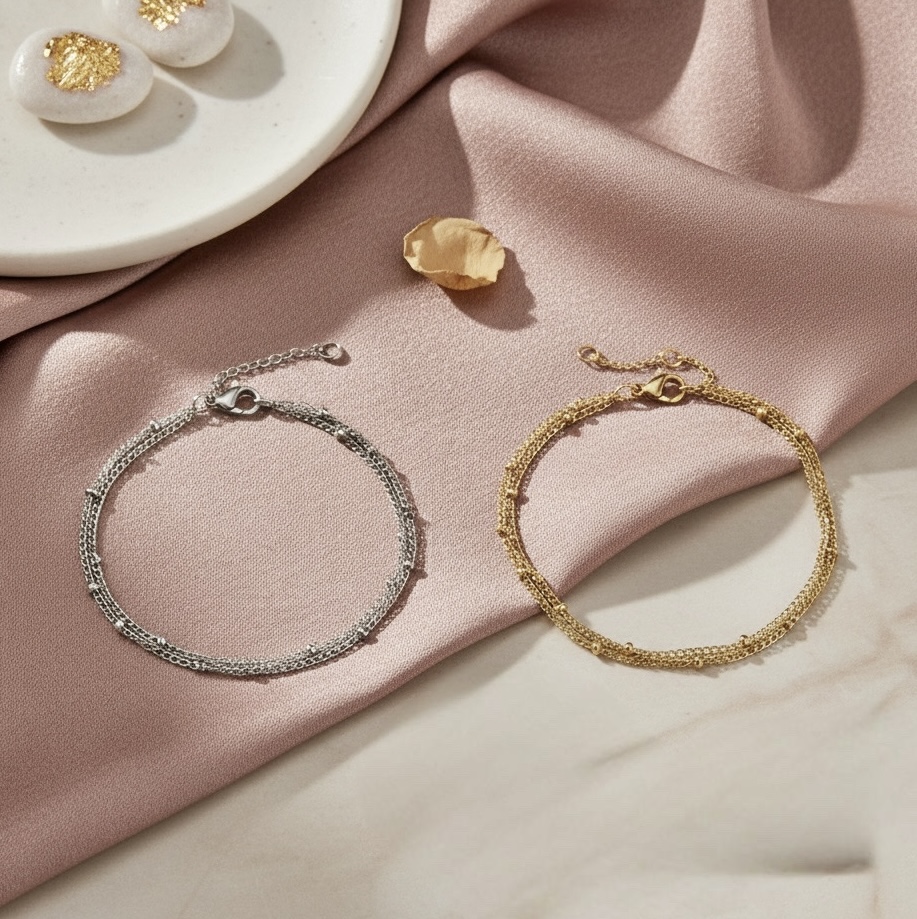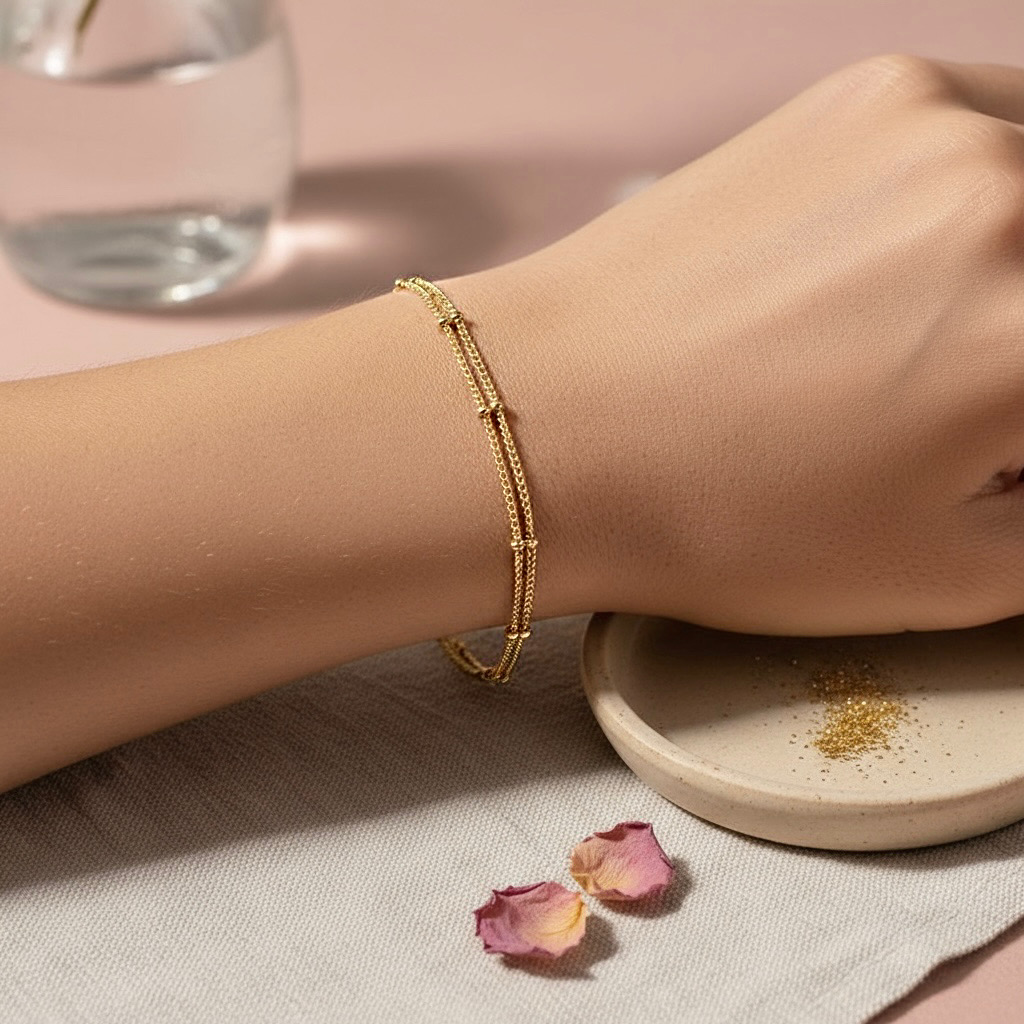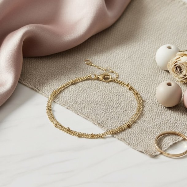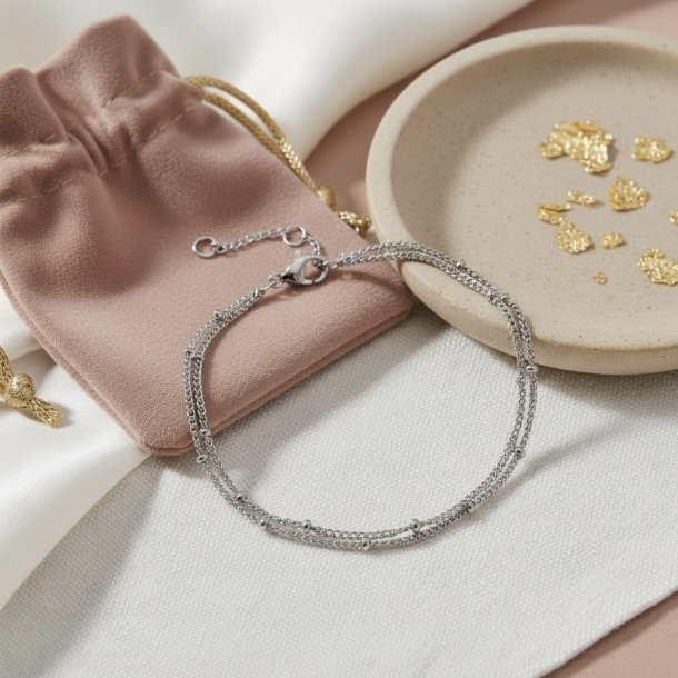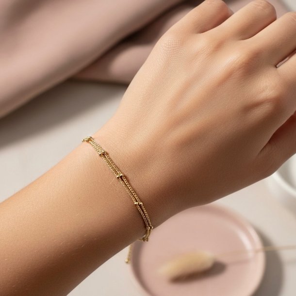 Super fint dobbelt-armbånd med små, kugle-vedhæng. Brug armbåndet alene eller kombinér det med dine andre yndlings-armbånd.