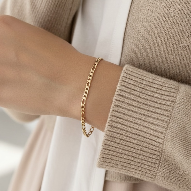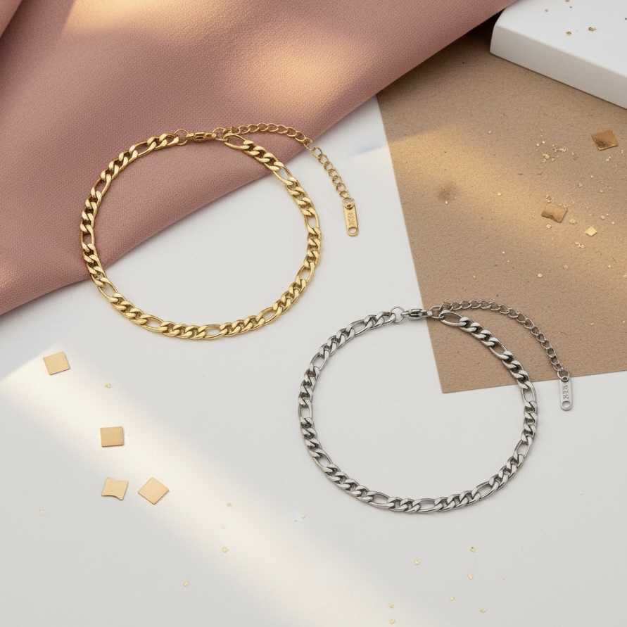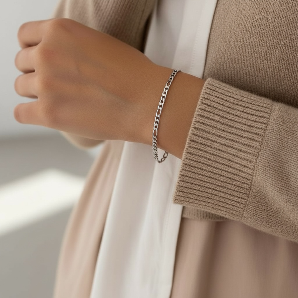Super flot "Figaro" armbånd i rustfrit ædelstål. Armbåndet kan bruges alene eller kombineres med dine andre yndlings-armbånd.