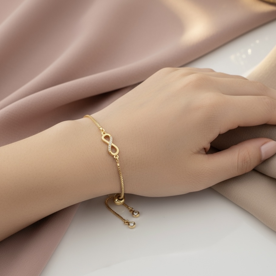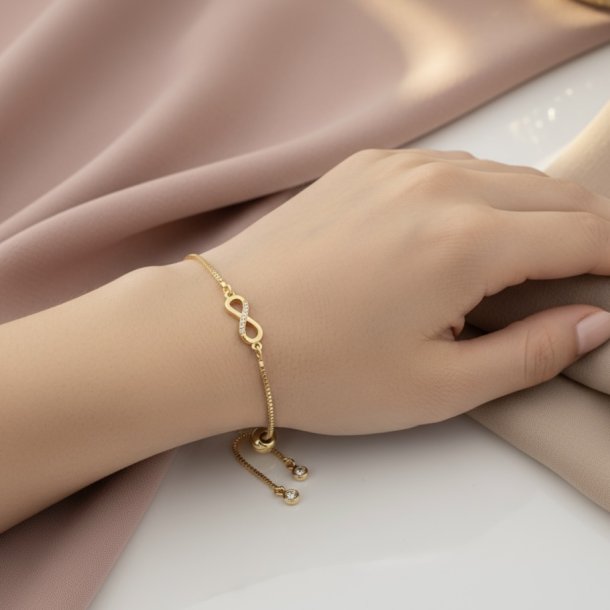 Smukt armbånd som er prydet med små, klare zirkoner. Armbåndet er justérbart og lukkes med en lille perle, der kan glides op og ned.