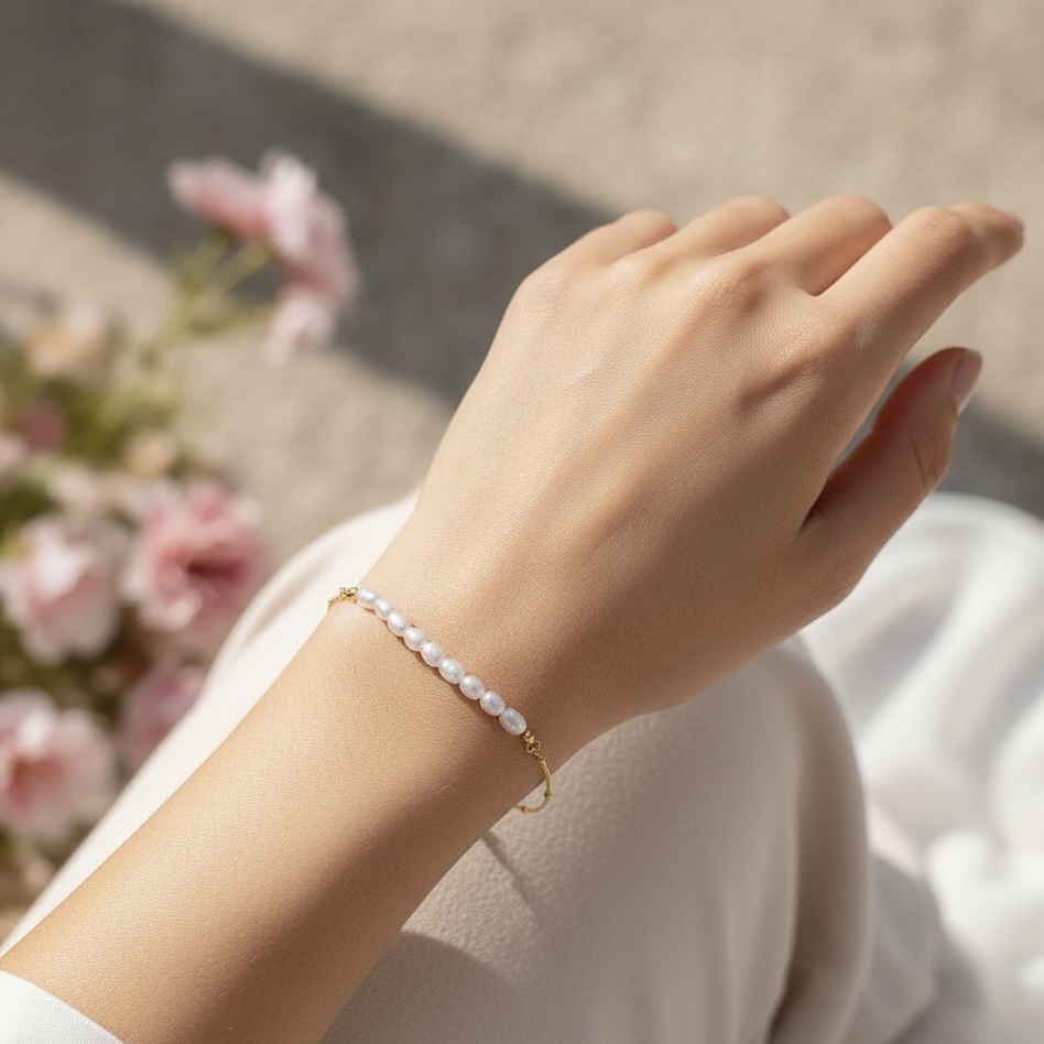 Fint armbånd prydet med perler, hvilket giver et elegant, stilfuldt udtryk. Brug armbåndet alene eller kombinér det med dine andre yndlings-armbånd.