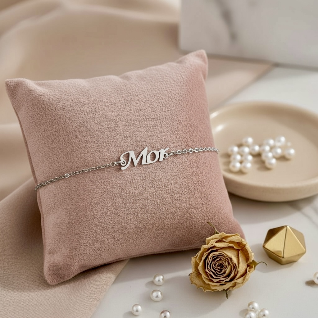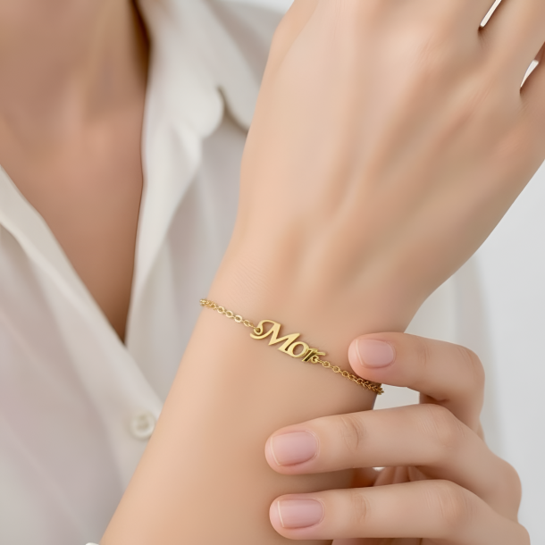 Super fint armbånd med skriften "Mor". Armbåndet er i rustfrit ædelstål, og er den perfekte gave til én mor, du har kær.