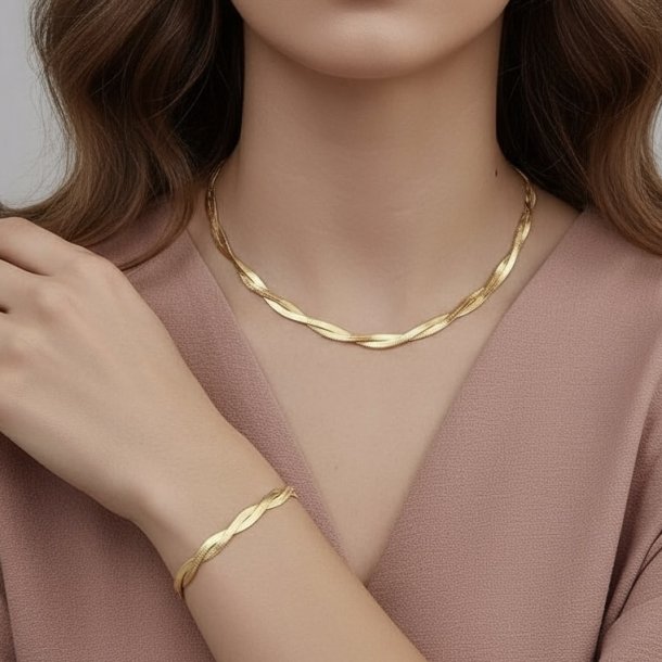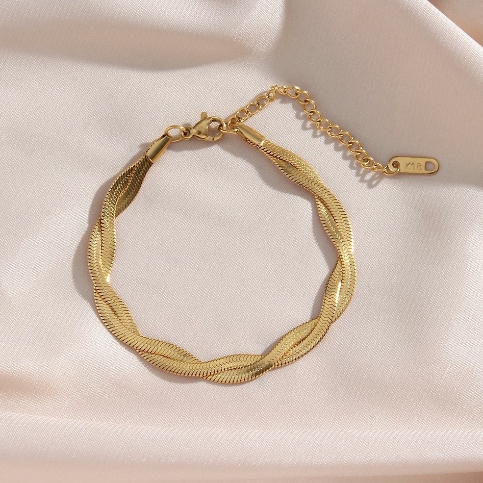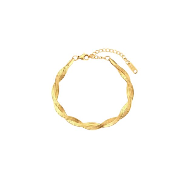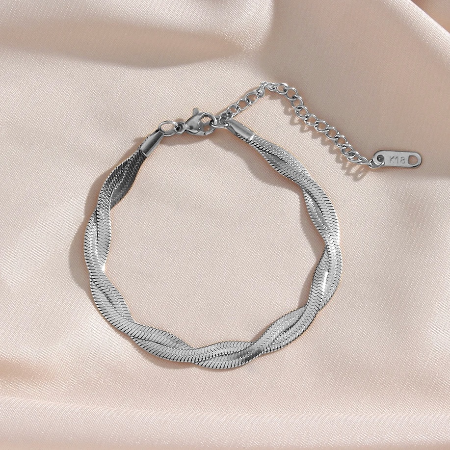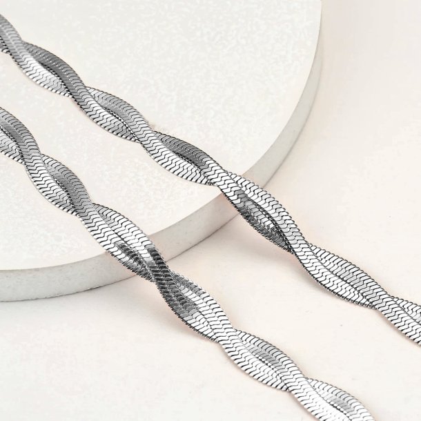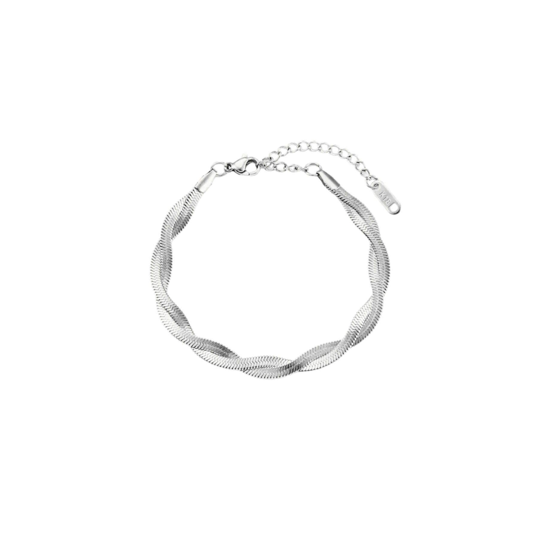 Smukt, snoet "Herringbone" armbånd i rustfrit ædelstål. Armbåndet har en smuk blank overflade og kan bruges alene eller kombineres med dine yndlings-armbånd.