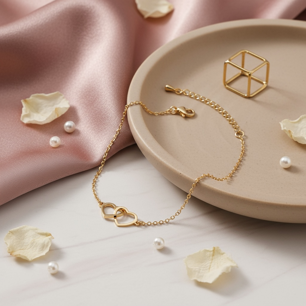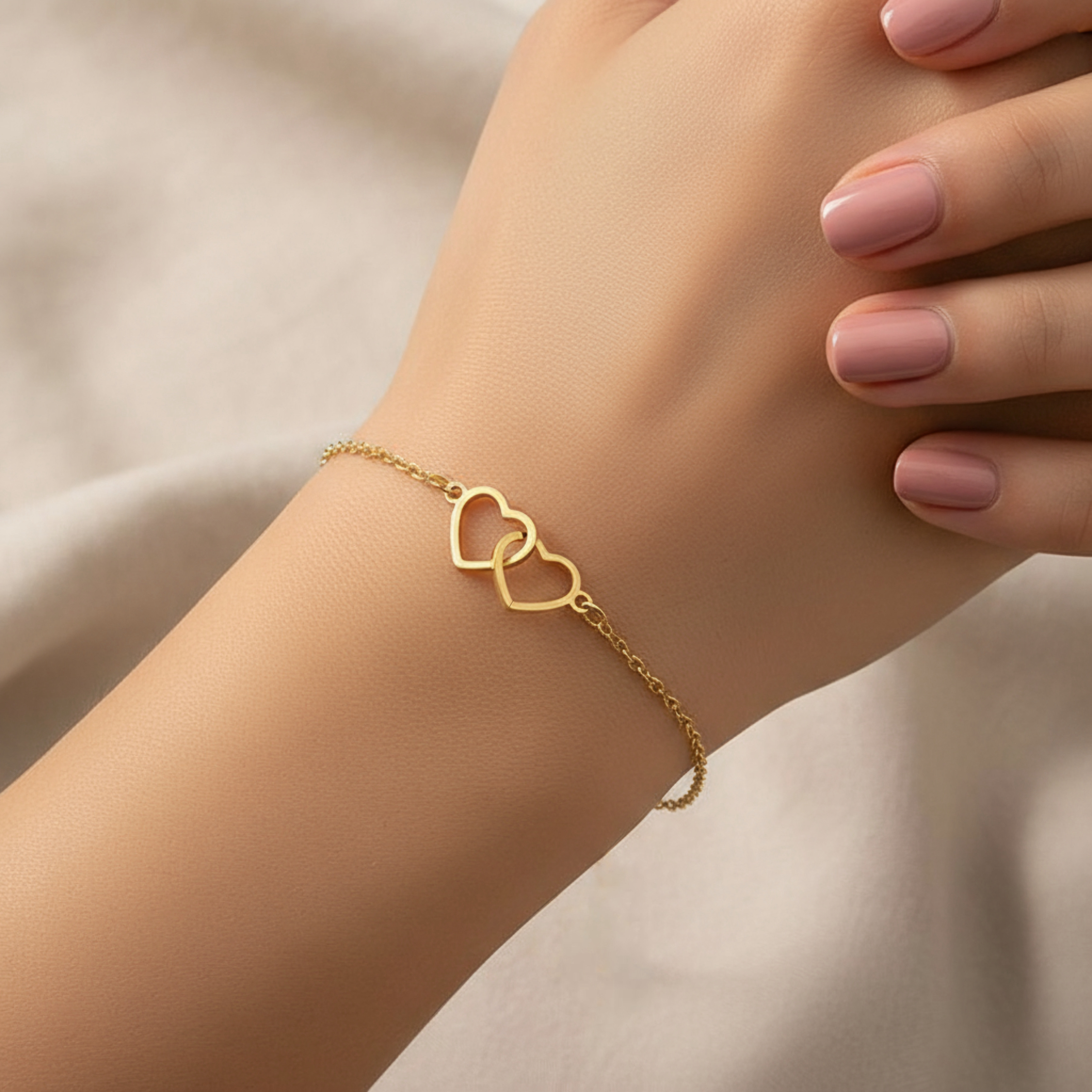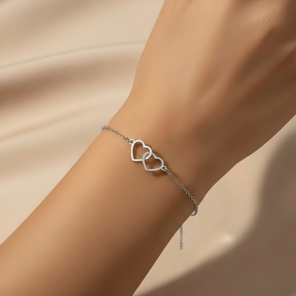 Super fint hjerte-armbånd i rustfrit ædelstål. Armbåndet er udført i et enkelt, feminint design.