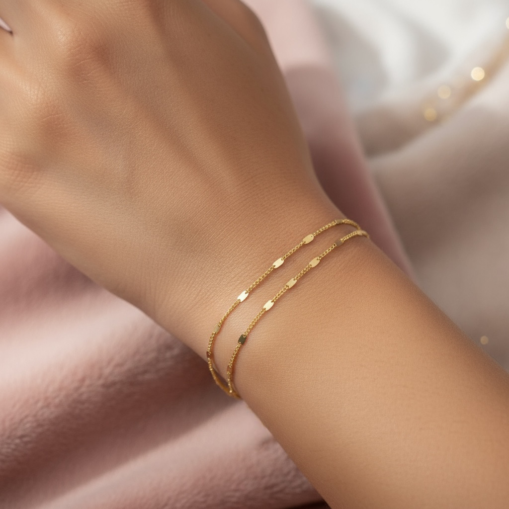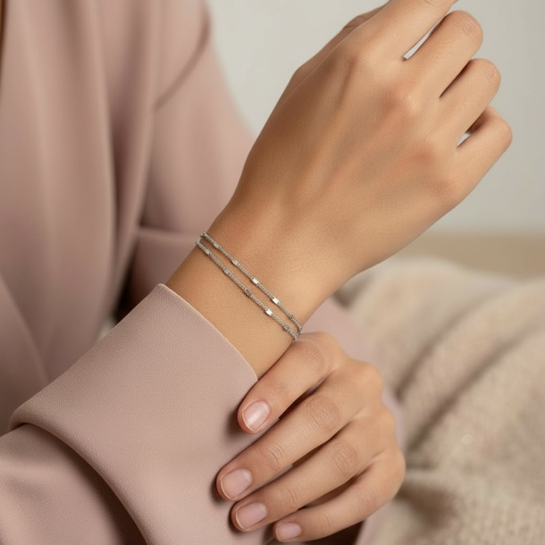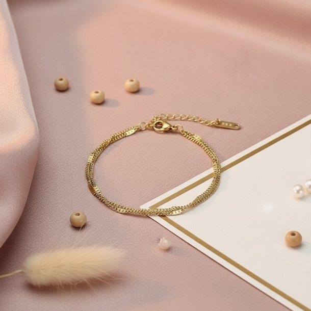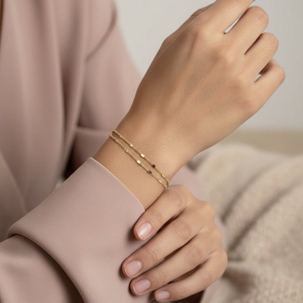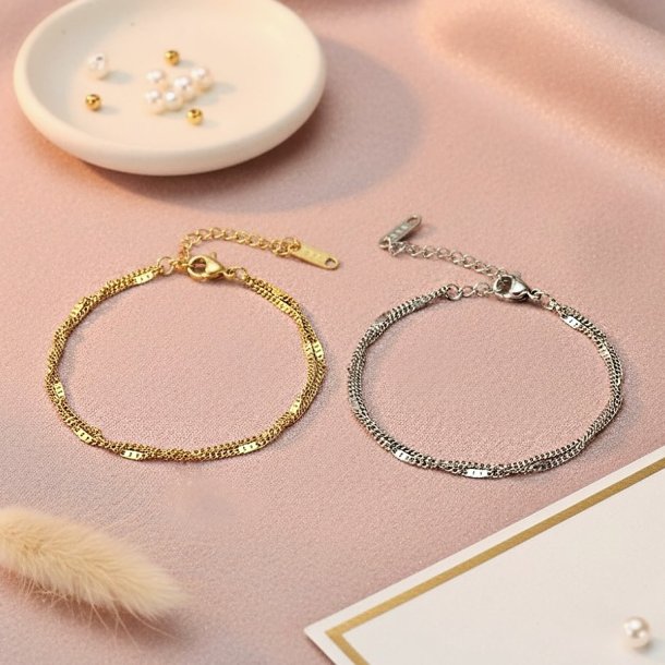 Flot, stilfuldt dobbelt-armbånd i rustfrit ædelstål. Brug armbåndet alene eller kombinér det med dine andre yndlings-armbånd.