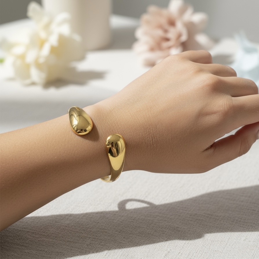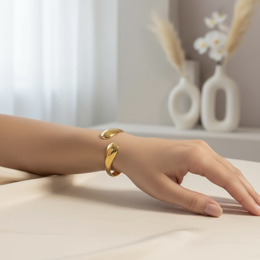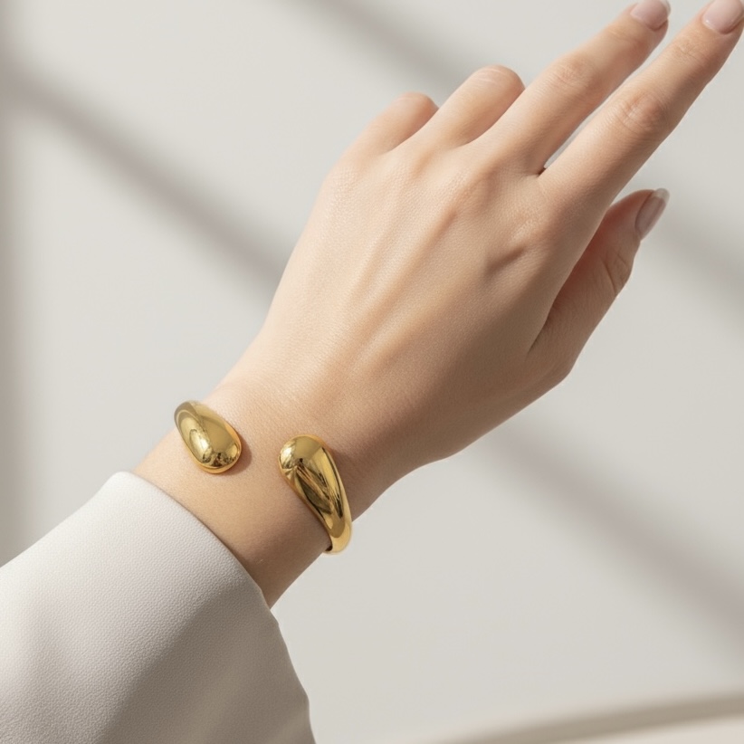 Vores chunky moderne "Mira" armbånd i rustfrit ædelstål, designet til at være vandfast og slidstærkt – en perfekt kombination af stil og holdbarhed til enhver anledning.