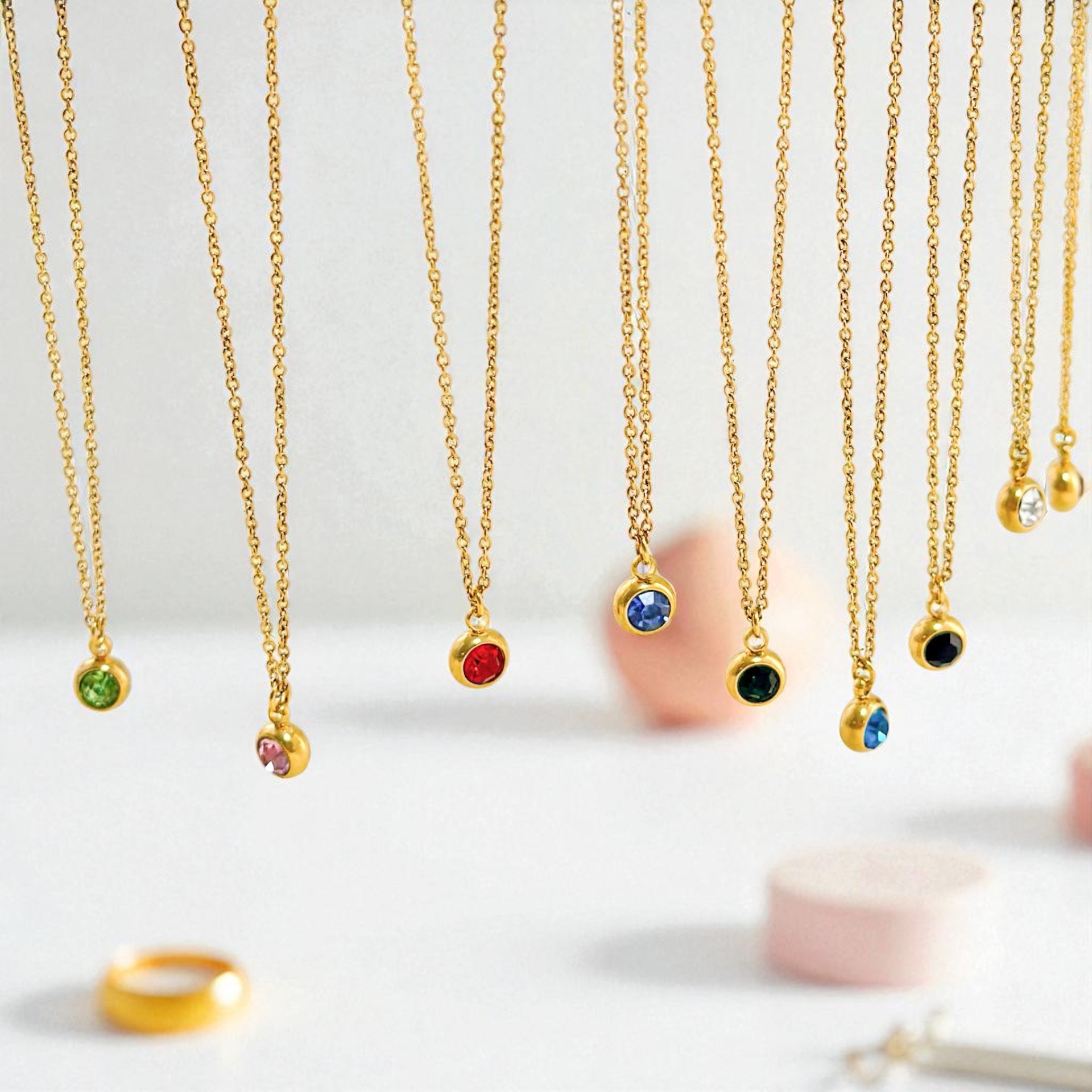 Fine, små birthstone/månedssten vedhæng (uden kæde). Vælg den sten, der repræsenterer din måned og brug den fx sammen med vores bogstav- eller stjernetegnsvedhæng.