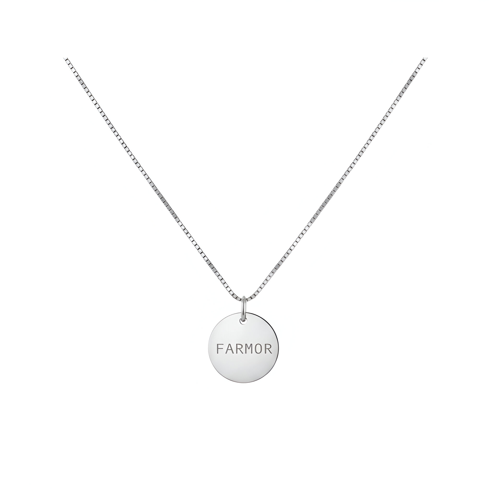 Flot vedhæng (uden kæde) med skriften "FARMOR". Vedhænget er af rustfrit stål med en smuk, blank overflade. Brug vedhænget alene eller kombinér det med vores andre fine vedhæng.