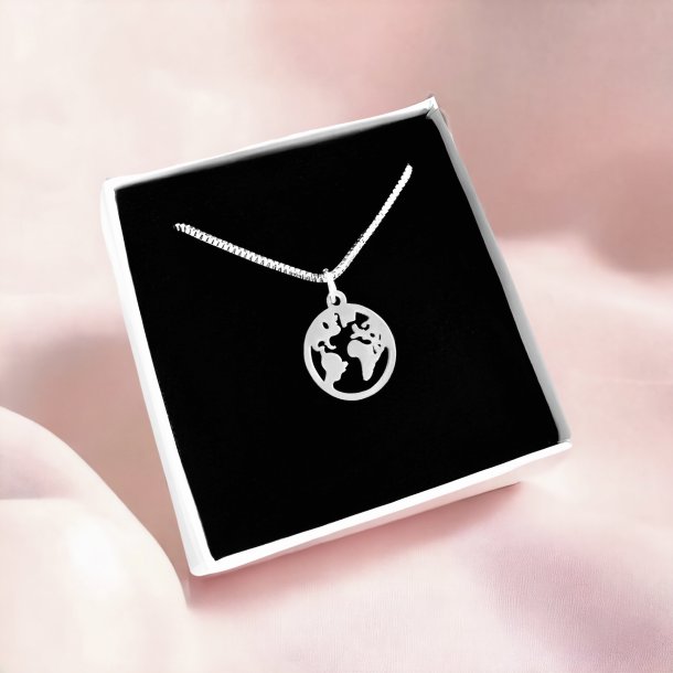 Flot vedhæng (uden kæde) med verdenskortet. Vedhænget er af rustfrit ædelstål med en smuk, blank overflade. Brug vedhænget alene eller kombinér det med vores andre fine vedhæng.