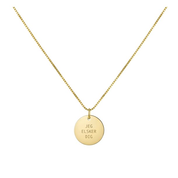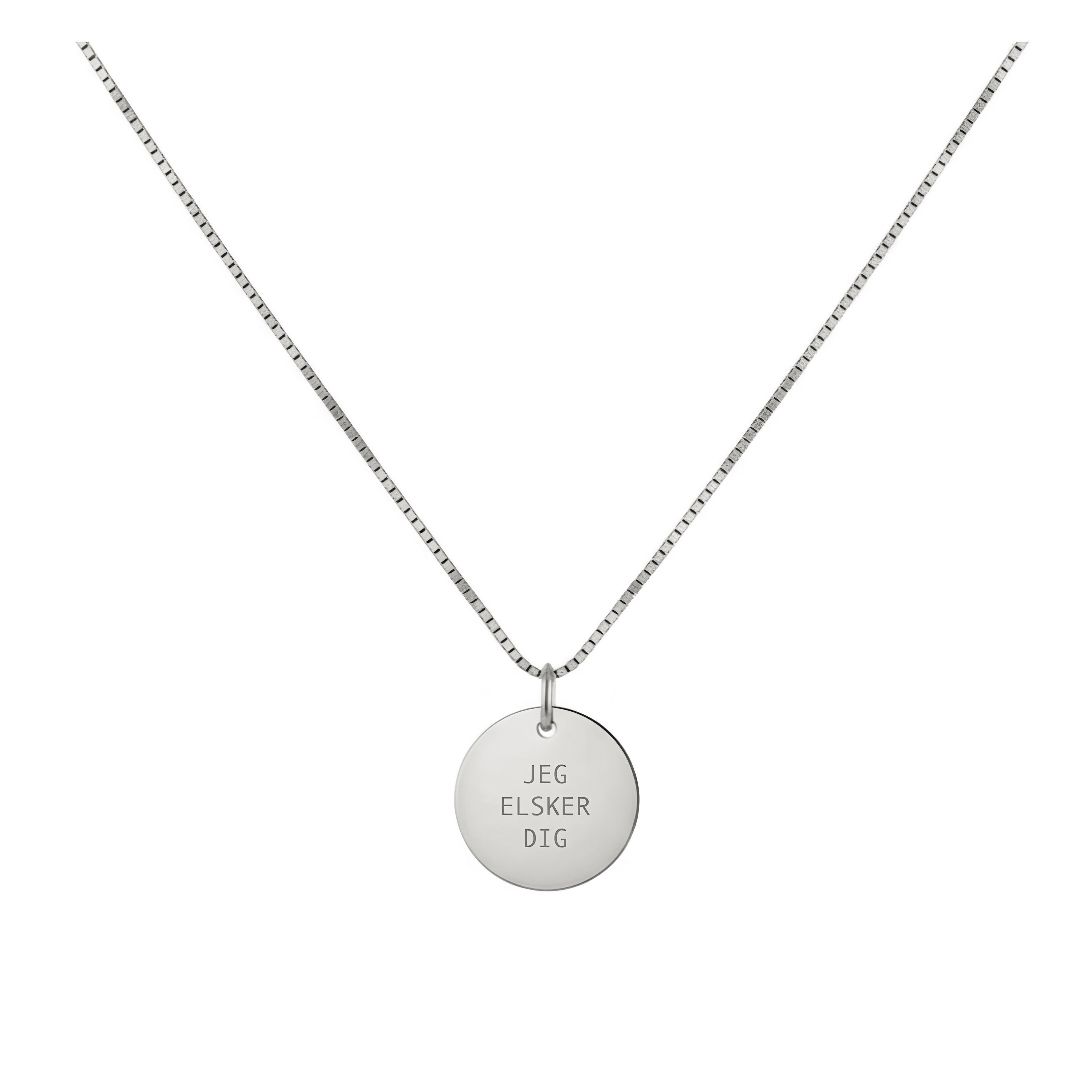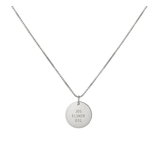 Flot vedhæng (uden kæde) med teksten "JEG ELSKER DIG". Vedhænget er af rustfrit ædelstål med en smuk, blank overflade. Brug vedhænget alene eller kombinér det med vores andre fine vedhæng.