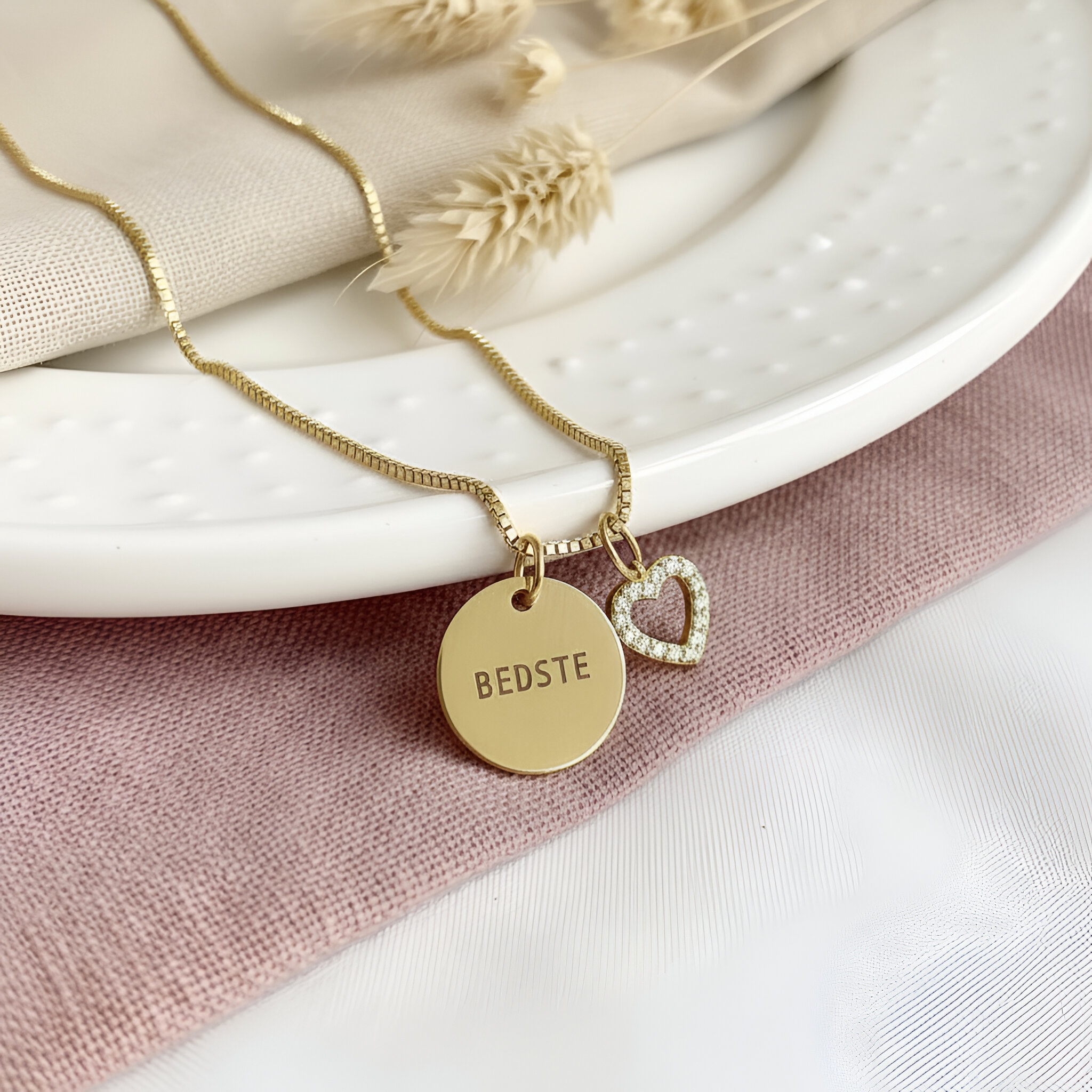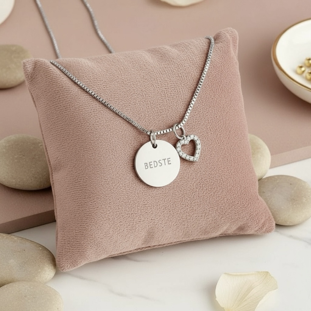 Flot vedhæng (uden kæde) med skriften "BEDSTE". Vedhænget er af rustfrit stål med en smuk, blank overflade. Brug vedhænget alene eller kombinér det med vores andre fine vedhæng.