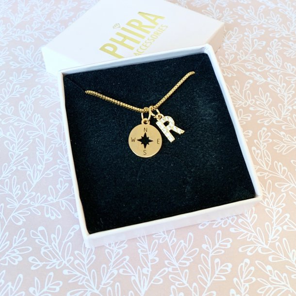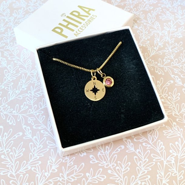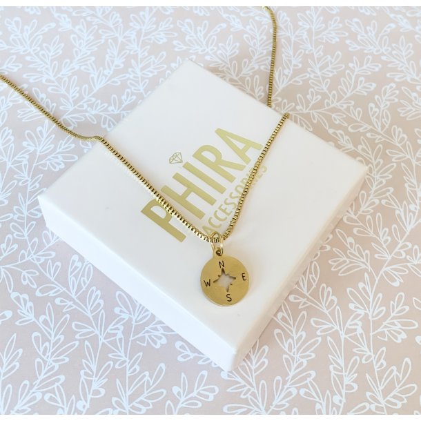 Lille, fint kompas-vedhæng (uden kæde) i rustfrit ædelstål. Brug vedhænget alene eller kombinér det med vores andre flotte vedhæng.