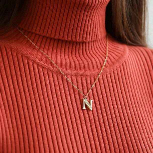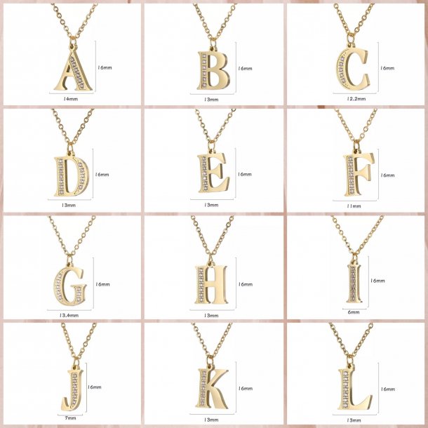Super fint bogstav-vedhæng i rustfrit ædelstål med små, klare zirkoner. Bogstaverne kan symbolisere en unik forbindelse til en kæreste, veninde eller et familiemedlem. Brug vedhænget alene eller kombinér det med vores andre fine vedhæng.