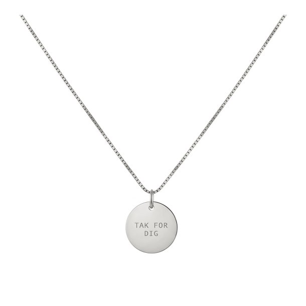 Flot vedhæng (uden kæde) med skriften "TAK FOR DIG". Vedhænget er af rustfrit ædelstål med en smuk, blank overflade. Brug vedhænget alene eller kombinér det med vores andre fine vedhæng.