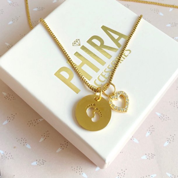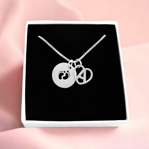 Fint vedhæng (uden kæde) med små babyfødder. Vedhænget er af rustfrit stål med en smuk, blank overflade. Brug vedhænget alene eller kombinér det med vores andre fine vedhæng.