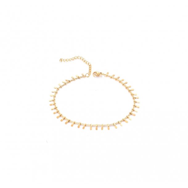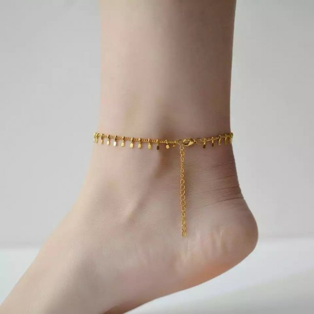 Flot ankelkæde med små, fine vedhæng. Ankelkæden er af rustfrit ædelstål og passer til ethvert look.