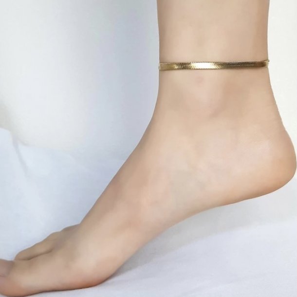 Flot, bred "Herringbone" ankelkæde i rustfrit ædelstål med en smuk, blank overflade. Brug den alene eller kombinér den med dine andre yndlings-ankelkæder.