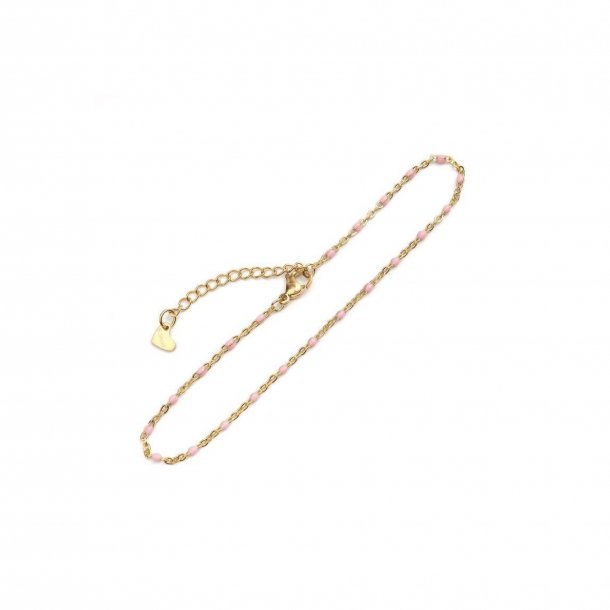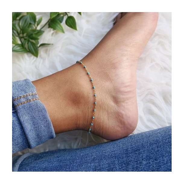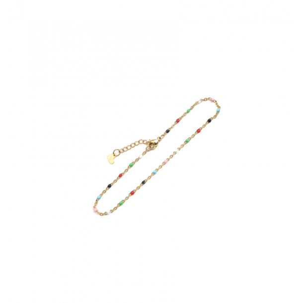 Flot ankelkæde i rustfrit ædelstål med små enamel vedhæng. Pift dit outfit op med en flot ankelkæde.