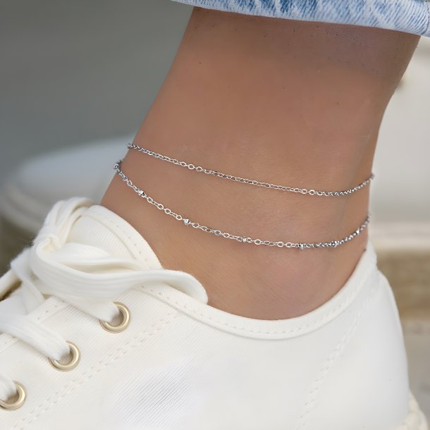 Flot dobbelt-ankelkæde, hvor den ene af kæderne er med små kugler. Ankelkæden er af rustfrit ædelstål og passer til ethvert look.