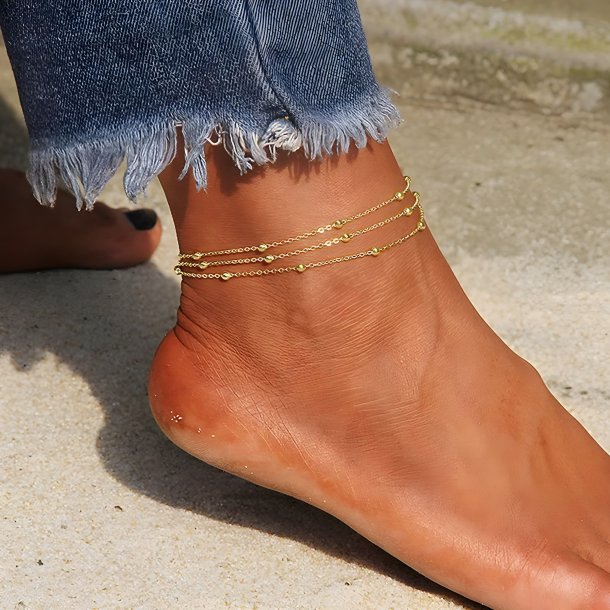 Flot triple-ankelkæde med små, fine kugler. Ankelkæden er af rustfrit ædelstål og passer til ethvert look.